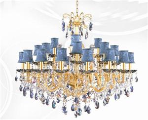 歐式燈具水晶吊燈SSDJ09,燈身是鐵質的燈身,燈罩為布藝燈罩,采用布藝燈罩的優點是透光性能好,而且發散出來的燈光不會產生眩光。孫氏照明的燈具原材料都是采用的優質的原材料,連裝飾用的水晶吊墜都是采用高檔的K9水晶。總體來說這是一款奢華、大氣、上檔次的燈具,用在酒店大堂是個不錯的選擇。